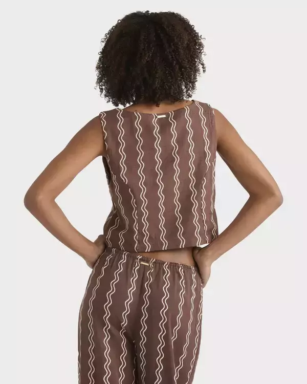 El top que vas a querer en todos tus looks. El Another Wave Wvn Tank es un top crop relaxed de símil lino con escote cuadrado y breteles anchos. Con botones simil carey al frente y detalle de marca en la espalda. Pertenece a la linea "The Wave Haze" donde el mar se funde con el cielo, una neblina ondulante te envuelve en una paleta fresca y serena, con suaves tonos de lila que se intensifican al nadar, mezclándose con nuevos verdes profundos. Estampados gráficos audaces se combinan con conjuntos tejidos, y se mezclan con la esencia romántica de pequeñas flores en vestidos suaves y vaporosos. Baby tees con divertidos gráficos se combinan con prendas esenciales de denim nuestros calces nuevos y nuestros favoritos. Ofrecemos una colección pensada para el cambio de estación y la neblina de las olas, para el amanecer temprano o la tarde tardía, donde los pliegues plateados del océano se encuentran con el cielo lavado y difuso.